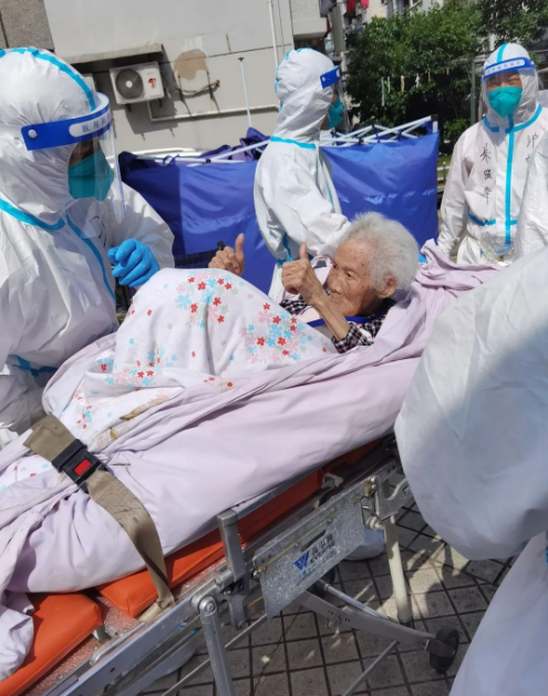 “我們是穿著防護服進去的,突然看到這么多‘大白’,老人們不免有些緊張,問的最多的就是‘去哪里’。隨著我們一趟趟幫著老人下樓、上車,老人們開始逐漸信任我們。因為轉運的部分老人中存在核酸異常的情況,有些老人還會時不時關照我們要注意防護。幫他們送上救護車時,老人還和我們連聲表示感謝。”田雪明說道。