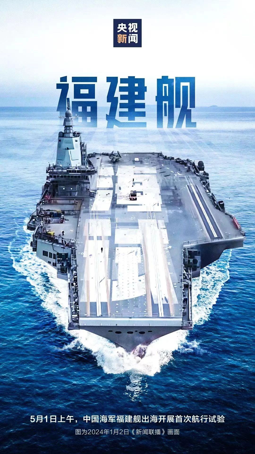 今天(5月1日)8時(shí)許,我國第三艘航空母艦福建艦從上海江南造船廠碼頭解纜啟航,赴相關(guān)海域開展首次航行試驗(yàn)。