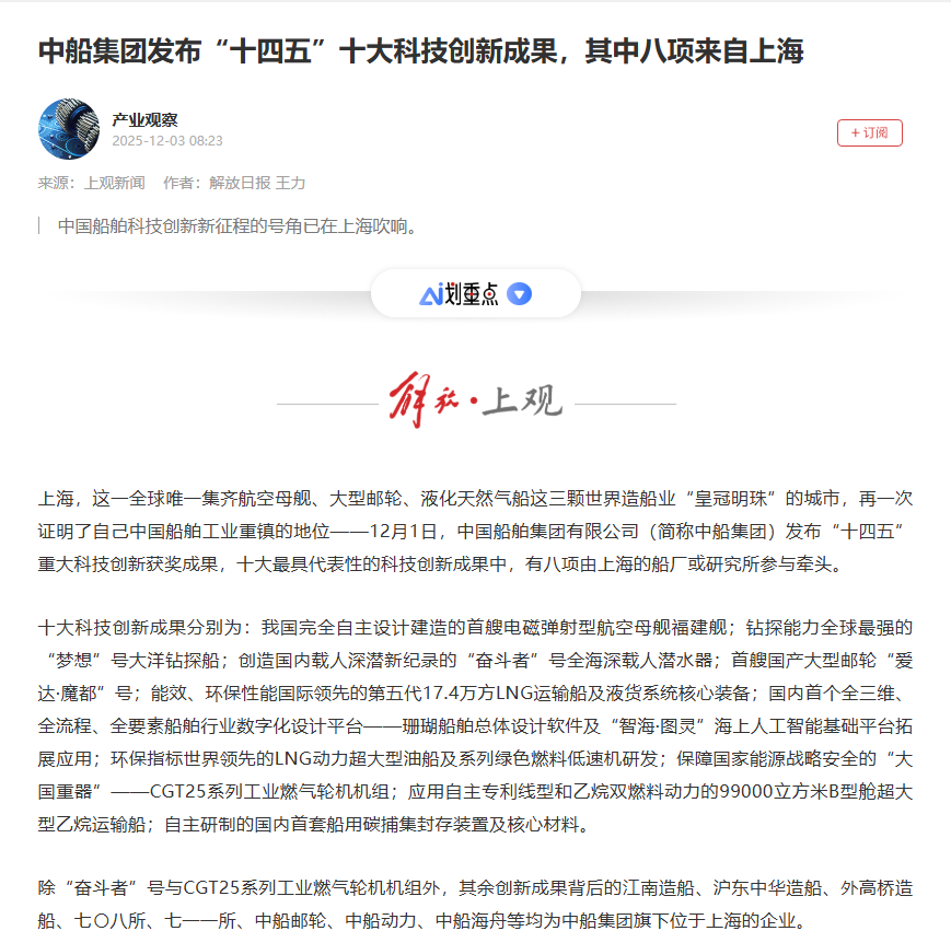 | 來 源:相關媒體/中船集團新聞宣傳中心/中國船舶報社