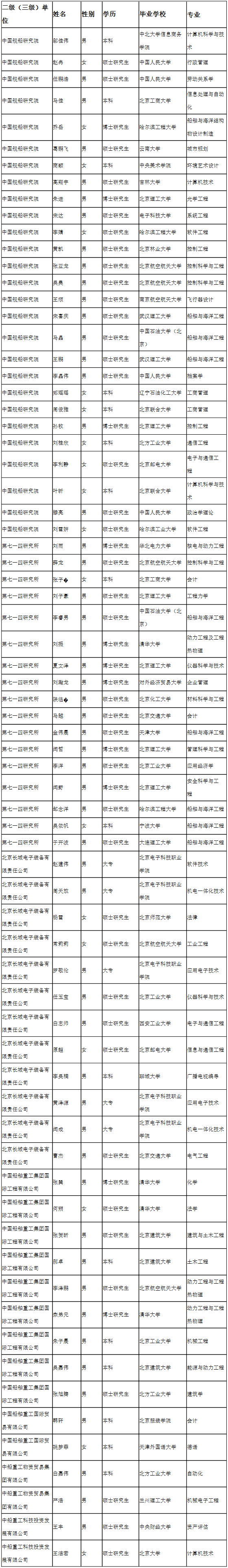 中國船舶重工集團有限公司2018年度擬接收畢業生情況公示